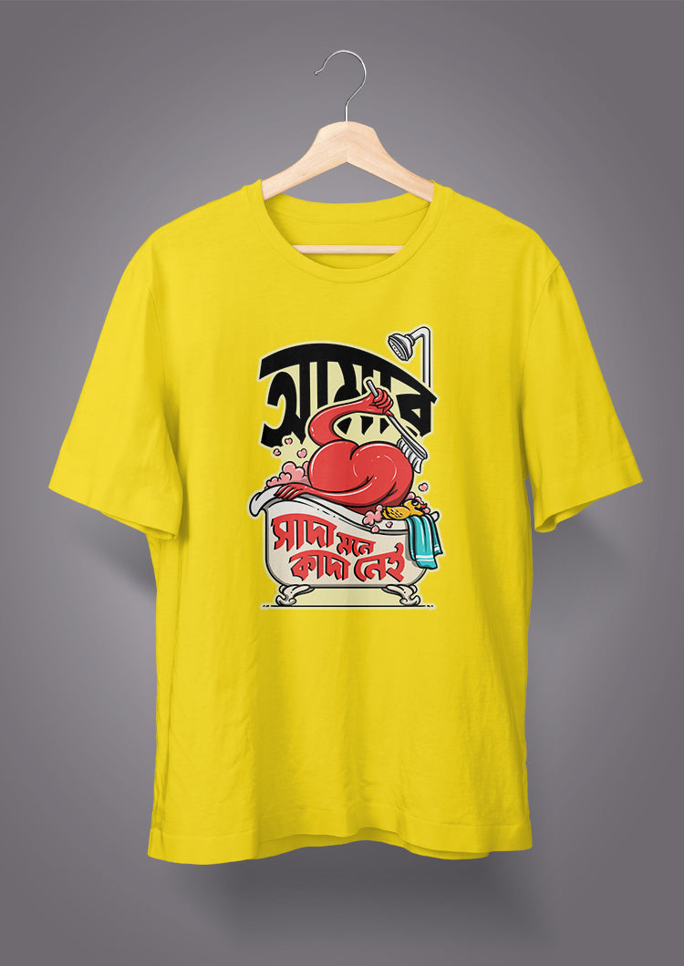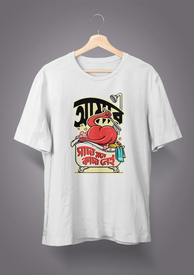 Add a quirky twist to your wardrobe with Bongmade’s "Aamar Sada Mone Kada Nai" T-shirt. Featuring the playful Bengali phrase, which humorously translates to "My Heart is Clean, No Dirt Here," this tee is all about keeping things lighthearted and fun. The clever illustration adds an extra layer of humor, making it perfect for anyone who loves witty designs with a touch of Bengali flavor.