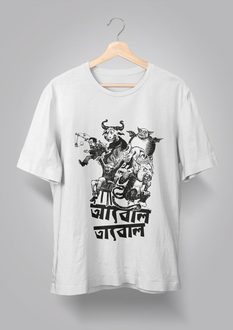 Bongmade crafted "Abol Tabol" t-shirt, which is based on Sukumar Ray's well-known collection of funny rhymes, is a great way to honor the wonders of Bengali literature. This t-shirt captures the unique spirit of classic nonsense poetry, making it ideal for fans of humor, satire, and imaginative play. Made from high-quality, breathable cotton, it guarantees comfortable wear all day long and effortless style whether you're reading or going out for informal events. Wear this t-shirt to celebrate Sukumar Ray's talent and to show your appreciation for humor, originality, and timeless literary enjoyment.
