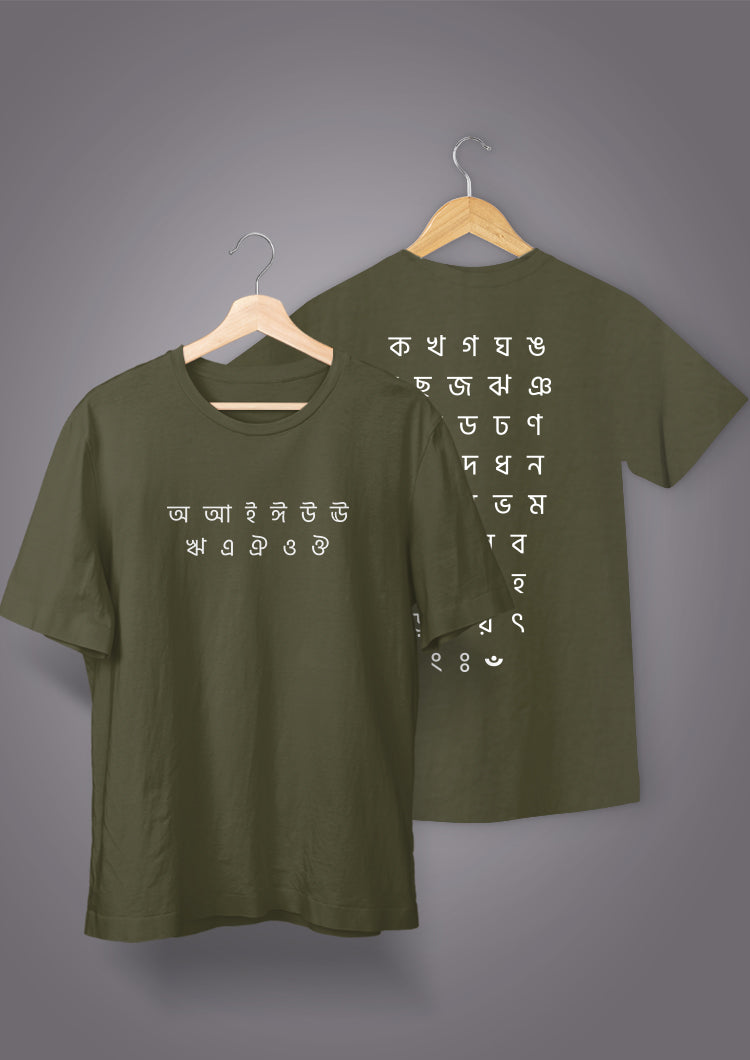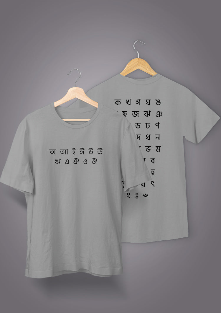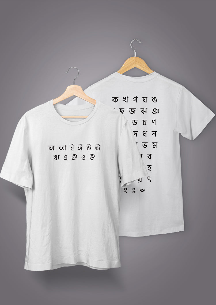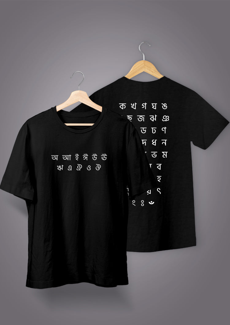 Celebrate the beauty of the Bengali language with Bongmade’s "Bangla Okkhor" T-shirt, featuring the full Bengali alphabet on both the front and back. This minimalist design is a tribute to the essence of Bengali identity and culture, making it a perfect choice for language lovers and proud Bengalis alike. Whether you're reconnecting with your roots or showcasing your pride, this tee keeps your cultural heritage close.