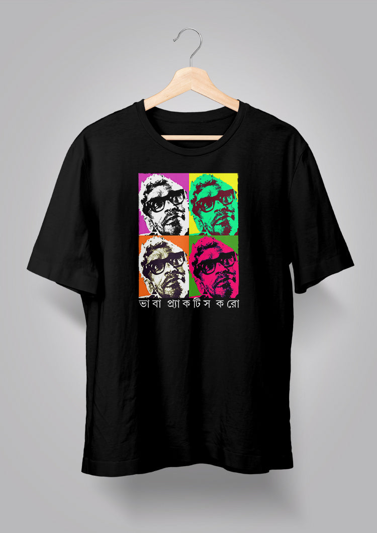This t-shirt is an excellent way to reach and connect with your audience who are of previous generations and a fond of timeless classics. This particular line of “bhabo bhaba practice koro” is a very popular dialogue from the film “Jukti takko aar gappo” given by the character Nilkantha bagchi and the image in the t-shirt portrays him. It reflects the political ideology of people in Bengal in those days, which was not very strong, as per the viewpoint of this line.