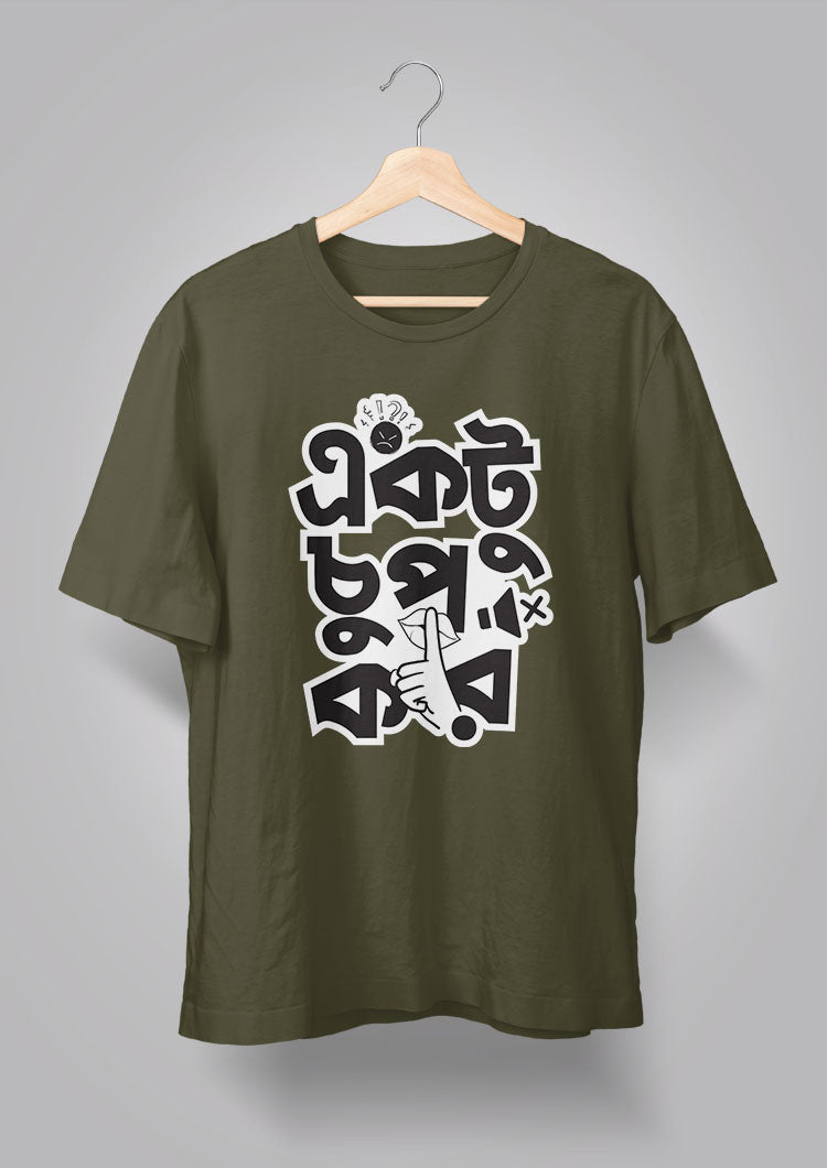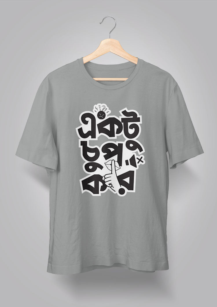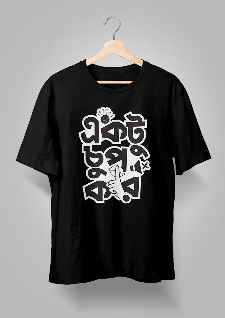 Sometimes, all you need is a little silence, and Bongmade’s "Ektu Chup Kor" T-shirt says it all with style! Featuring the iconic Bengali phrase, meaning "Just Be Quiet," this tee captures the humor and everyday expressions of Bengal. Perfect for those moments when words aren’t necessary—let your T-shirt do the talking!
