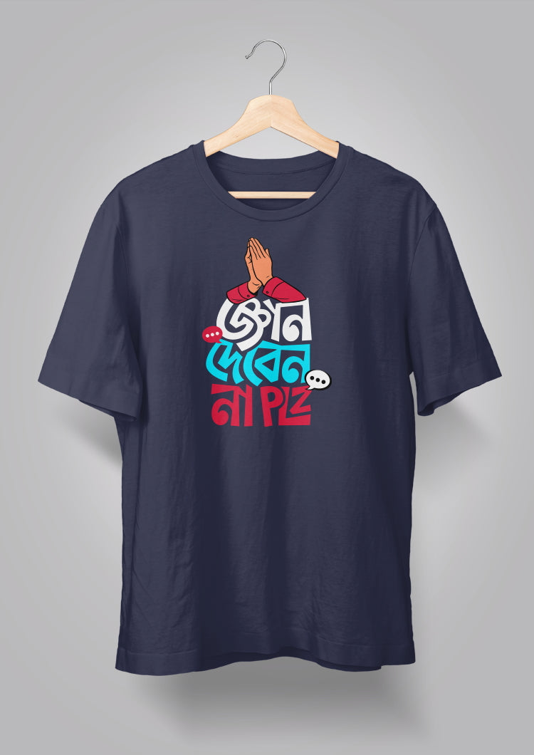 The “Gyaan deben na please” t-shirt will perfectly match with someone who has a stubborn personality. This type of personality does not easily gets influenced by what someone says nor is interested in listening. They are instead sending a direct plea to not give any lecture regarding their situation, because most of the times people end up commenting without knowing the scenario. The t-shirt also shows the picture of hands joined requesting not to talk.