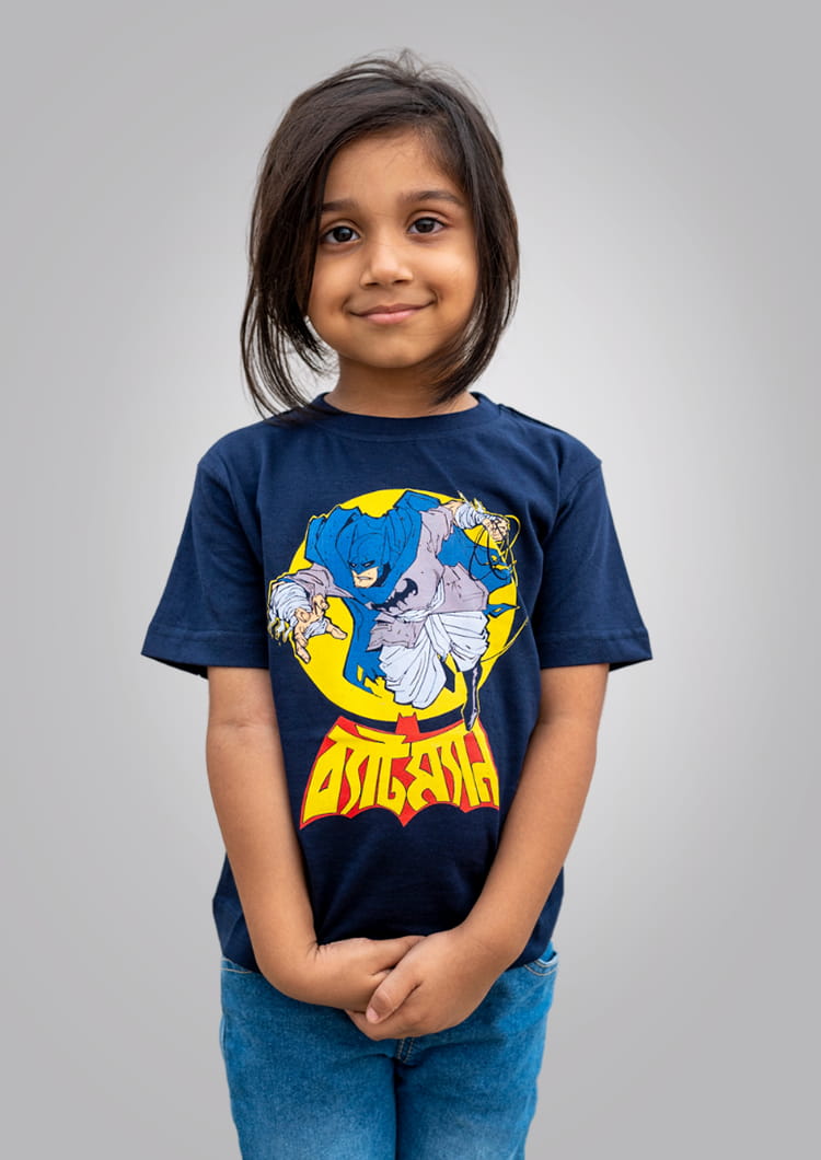 Bengali Batman – a rip off of the original Batman! Laden with a dhoti and a full Bengali avatar. Get best quality bengali graphic t-shirt for kids. The t-shirt comes in a very soft fabric which is very comfortable in any weather.