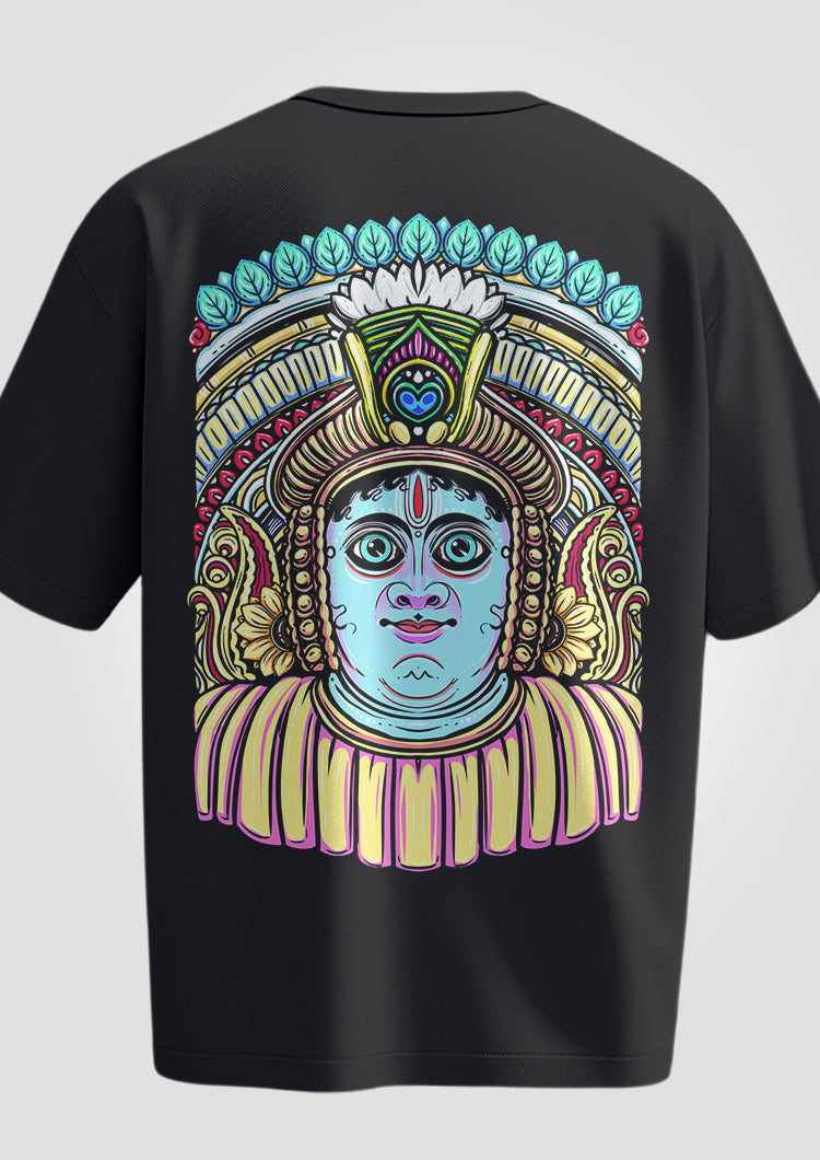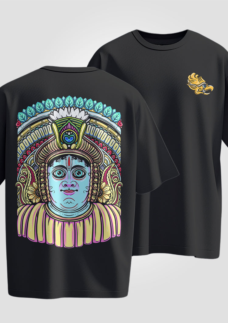 It shows a beautiful artistic portrayal of lord krishna. He is someone who can protect you from every obstacles in life if you are dedicated. You can feel his presence by looking at this craftsmanship as well. Krishna is always celebrated and worshipped for his soulful connection with Indian music. Many lovers also draws inspiration as he is also well known for his divine love and youthful charm. Bring out the inner love and respect towards Krishna by wearing this t-shirt.