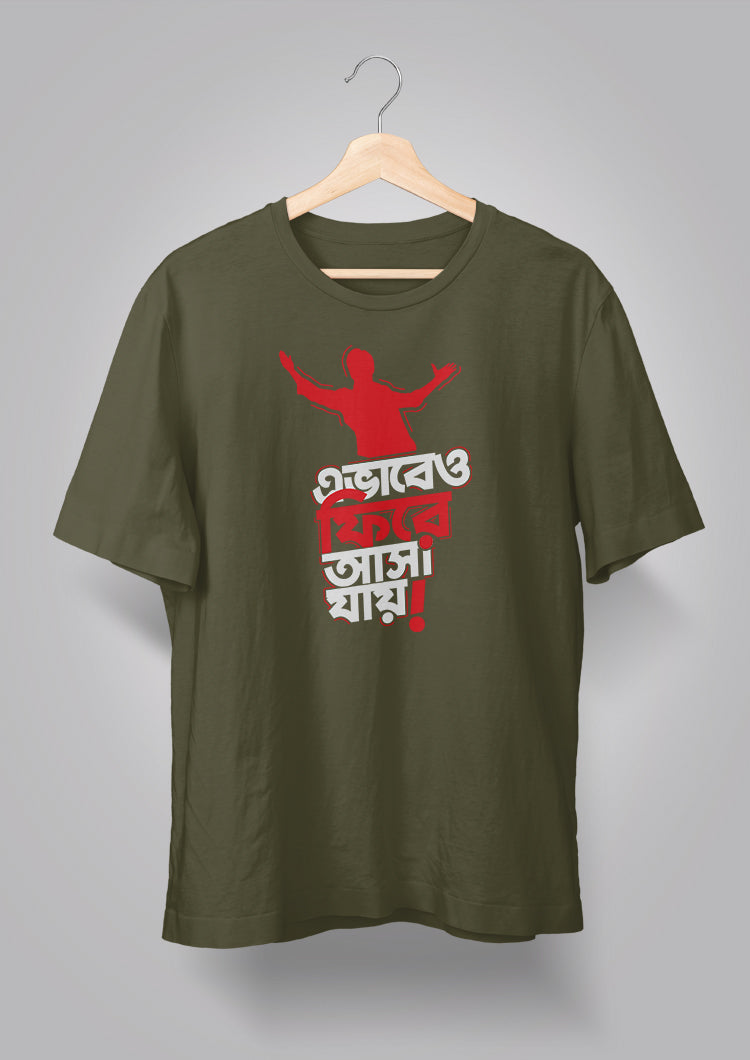 This particular dialogue symbolizes that there can be different ways of comeback and you can choose to make your comeback in a grand way. Celebrate your comeback with our "ebhabeo phire asha jaye" t-shirt. It also represents a Bengali movie dialogue plus the picturization is eye-catching. Let others remember your comeback by doing something different. Be unique with your own style.